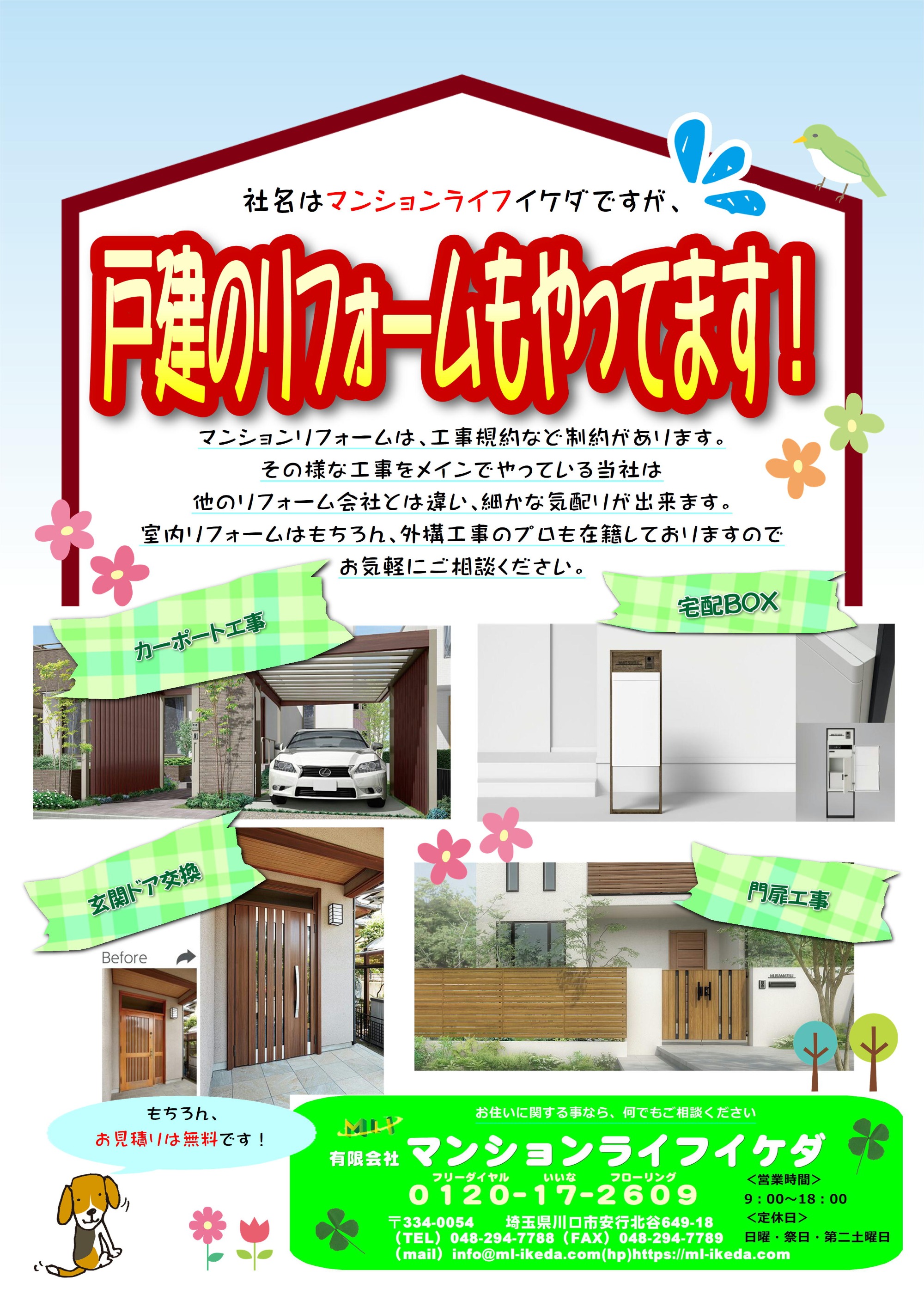 社名はマンションライフイケダですが、戸建てのリフォームもやっています!
